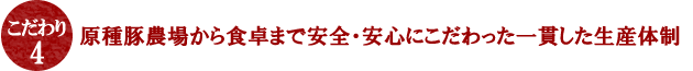 原種豚農場から繁殖農場及び自然環境豊かな肥育農場において、独自のヘルスプログラムに基づいた一貫生産システムで育てた安心な豚で、履歴が明確な商品です。