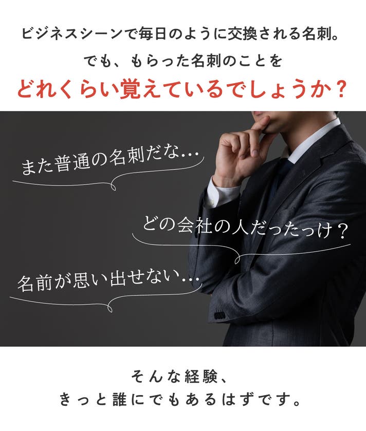 通常の名刺と比べて、圧倒的に覚えてもらいやすくなります