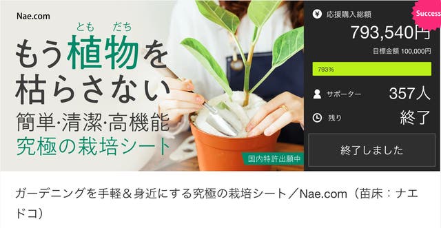 第一弾のプロジェクトでは357人の方に応援していただき、目標を達成しました。