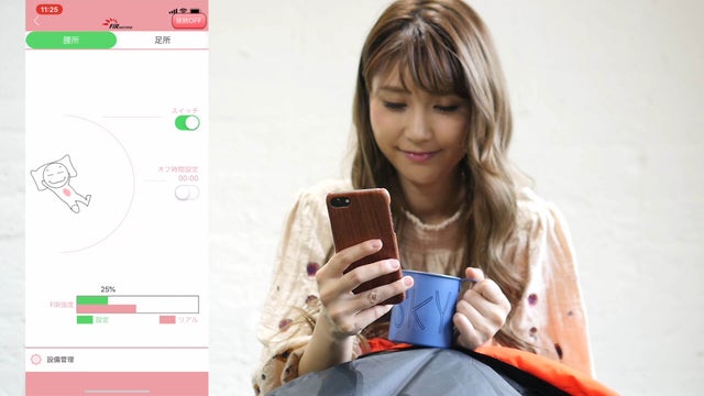 足部分と腰部分の2か所に遠赤外線温熱シートが内臓されており、これを電気でほんのり温めます。