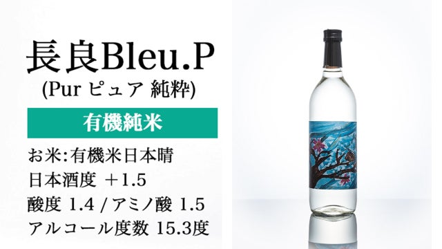長良Blue 有機純米酒は、有機JAS認定米を100%使用した純米酒で、長良伏流水の柔らかな口当たりと、有機栽培日本晴のふくよかな米の旨みが感じられます。