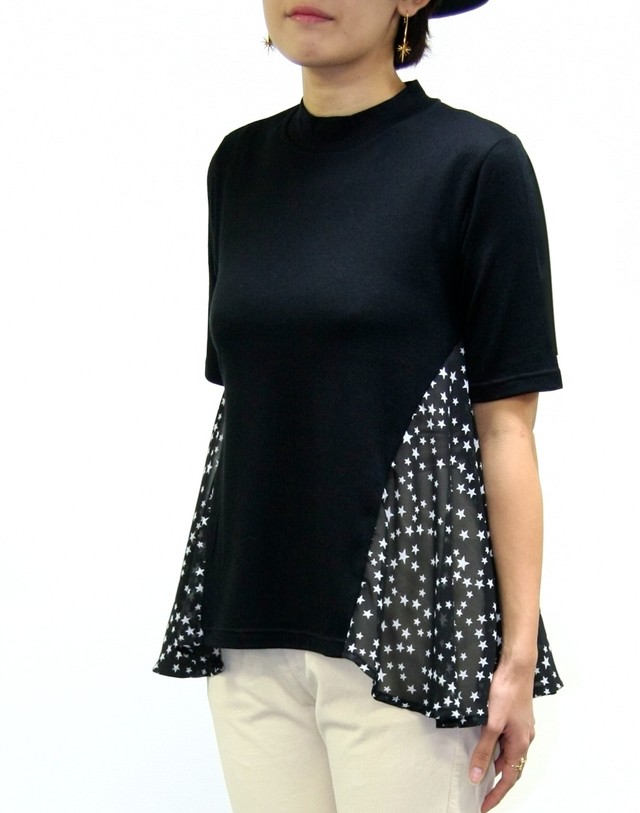 脇から後ろに星プリント切替デザインTシャツです。