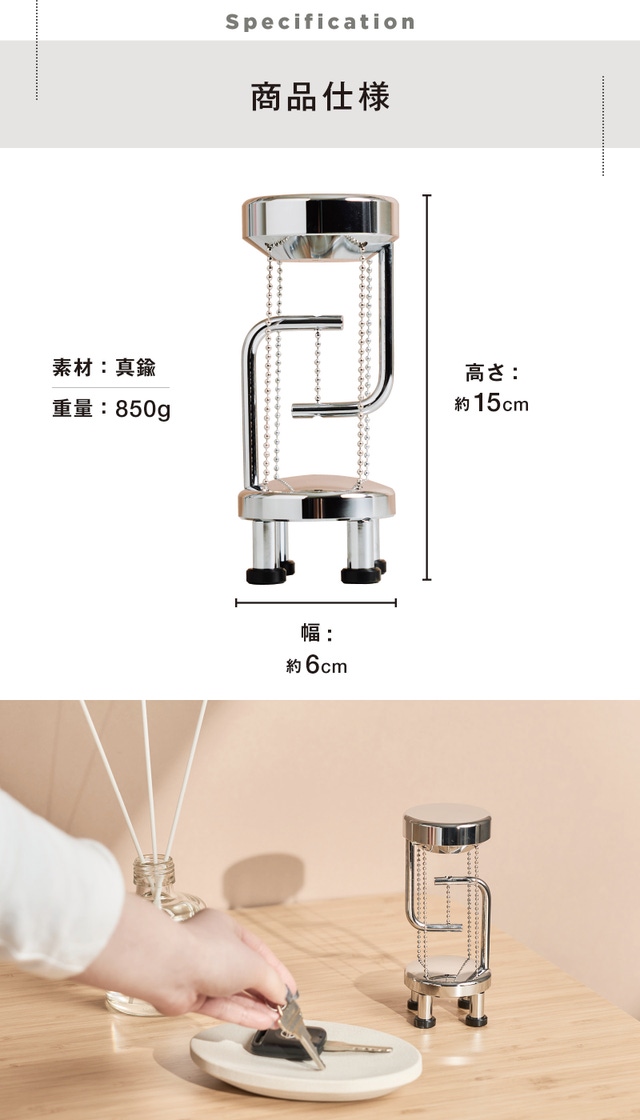 絶妙なバランス感を保ちながらも、鍵やアクセサリーなど500gまでの小物を置くことができます。