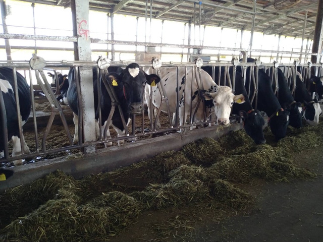 夢中で食べる牛さん。現在は130頭の牛さんが飼育されています。
