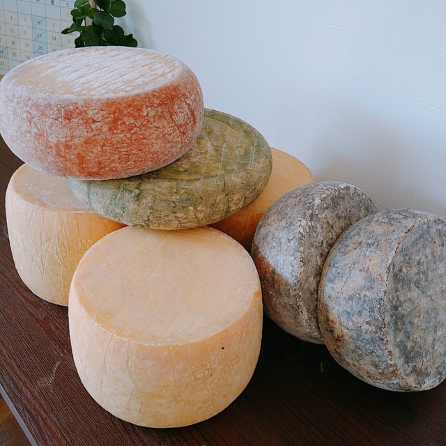 熟成中のチーズ達。毎日、熟成の具合をひっくり返しながらチェックしてチーズを育てています。