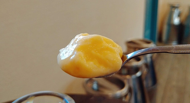 このプリンベースに熟成が終わったゴーダチーズ、ブルーチーズを混ぜ、2種類のチーズプリンを完成させました!