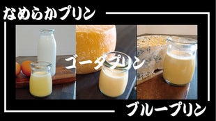 - 滑らかプリン、ゴーダ入りの甘しょっぱいゴーダプリン、クセのあるブループリンの3種を用意
