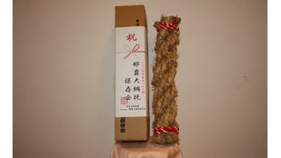 嘉例とは、沖縄では「おめでたい」の意味で使われます。嘉例綱は、幸福を挽寄せる綱として有名です。例年、大綱挽が終了すると、観客の皆さんに、保存会の係が、嘉例がくるようにと、手綱を切って配るのが、恒例行事です。2022年第52回那覇大綱挽の手綱で特別に製作した嘉例綱をリターンとします。
