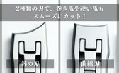 曲線刃と斜め刃の2種類がセットになっており、硬い爪や分厚い爪、巻き爪など、あらゆるタイプの爪にも対応可能。どんな爪でも簡単に切れるため、自宅や外出先でのケアもスムーズです。