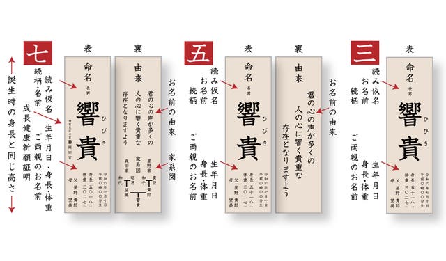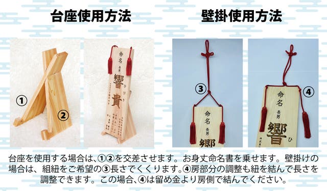 七プランと五プランにはお身丈命名書専用台座が付属されます。