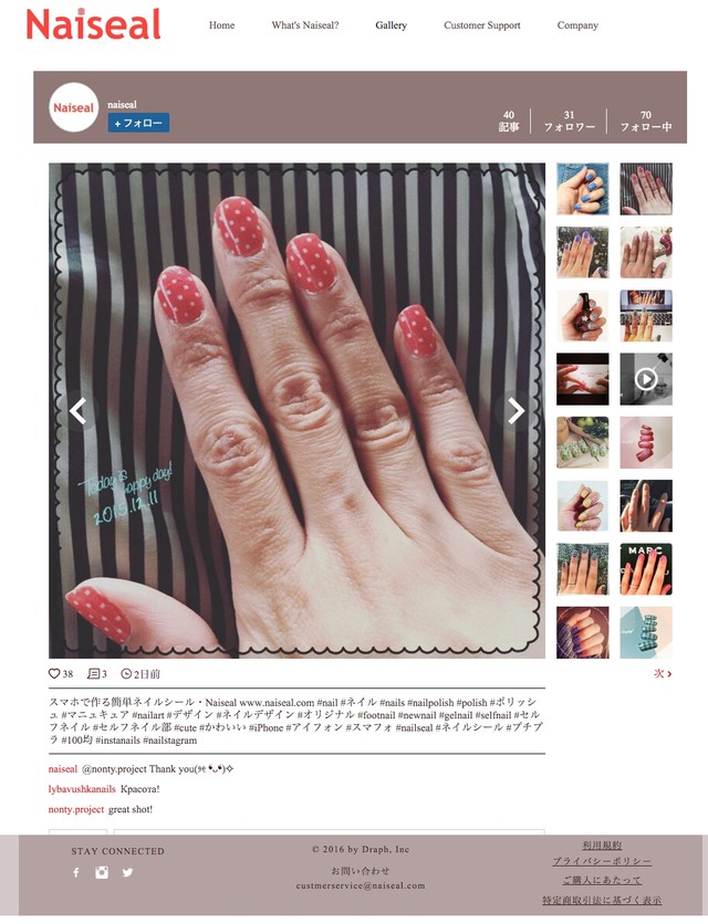 Naisealで作ったネイルをHPとInstagramで公開中です。ぜひ御覧ください。