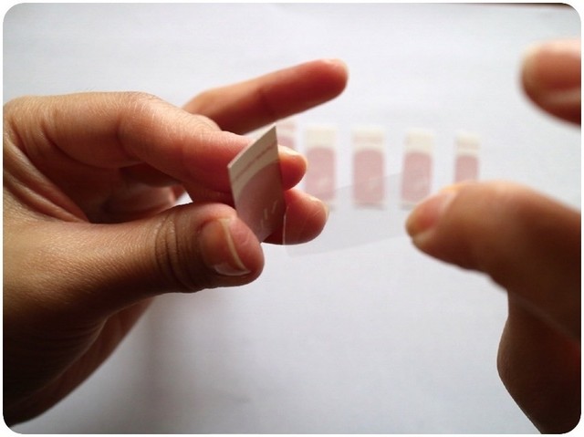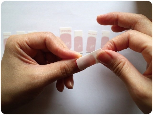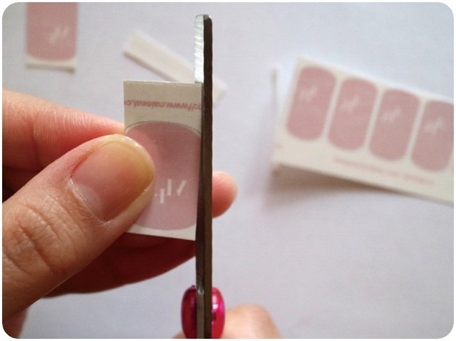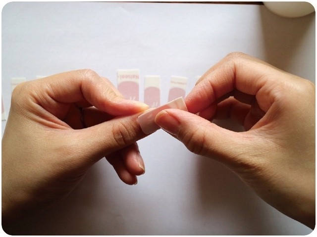 6.爪に貼り付いたのを確認しながら、台紙を滑らせるように剥がします。