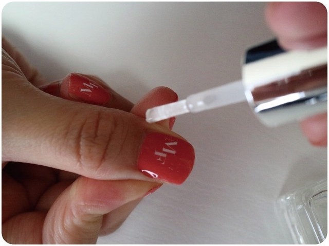 7.シートに残った水分をティッシュで拭い、トップコートまたはトップジ ェルを塗ります。