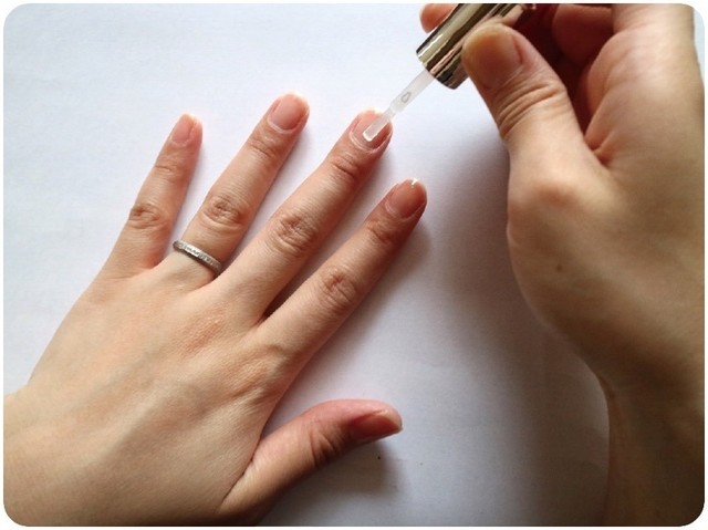 1.爪の汚れや油分を取り除き(石鹸で洗えばOK)、ベースコートを塗ります。