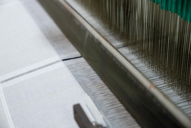 薄く繊細に織るため、糸の種類にあわせてそのつど機械を細かく設定するような、ひと手間ふた手間を惜しまずにかけるものづくりをされています。