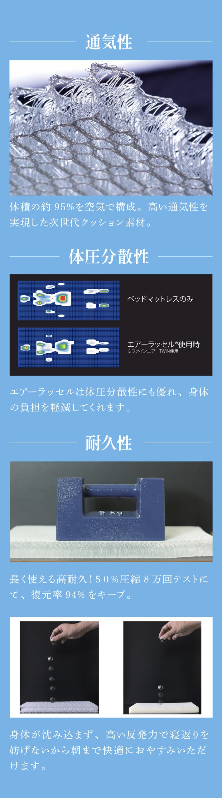 クッション材料には、高い通気性と反発性をもつ「エアラッセル」を採用。