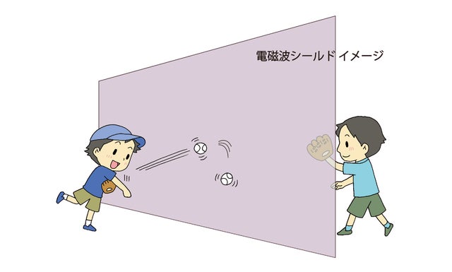 例えばAさんとBさん二人がキャッチボールをしているとします。AさんからBさんへ、BさんからAさんへとボールが行きかいます。この二人の間を行きかうボールを電磁波(電波)とします。普通の状態であれば、問題なくキャッチボールを行うことが出来ます。