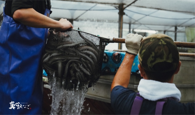 我々はジャポニカ種というつまようじくらいの大きさの「シラスうなぎ」を稚魚の段階から購入し、養鰻場と一緒に育てています。夏の土用の丑の日が一番のピークになるように、12月〜1月に池に入れて7ヶ月くらい育てます。