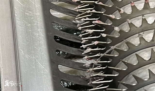 内臓の残物もピンセットで丁寧に手で抜きます。