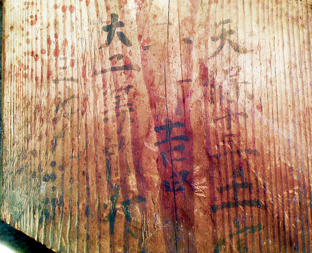 [ 強運の酒蔵と、酒蔵の梁に書かれていた天保13年2月の大工の棟梁の署名 ]