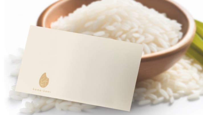 また、印刷用紙には、廃棄されてしまうお米で作った紙素材kome-kami(コメカミ)を選びました。