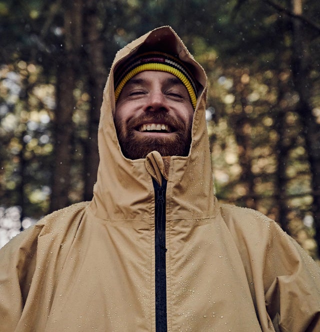 自然にキャンプに必要な商品を構想するようになり、日常生活とアウトドアの境界なく着られるウィンドブレーカーレインコートを開発することになりました。