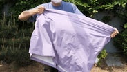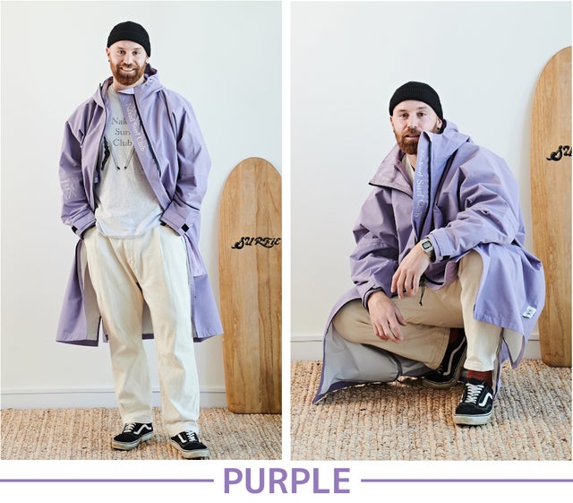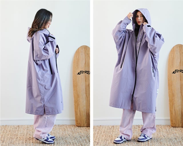 明るい色のパープルカラーは肌色に関係なく男女両方に似合うカラーです。今まで機能性を重視した暗い色のレインコートに飽きた方におすすめです。
