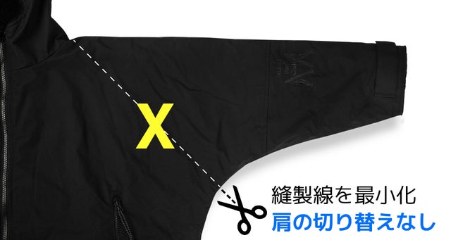 フードから腰まで上半身を全体的に包み込む機能性メッシュ裏地は夏場でもベタつかず快適に保つことができます。
