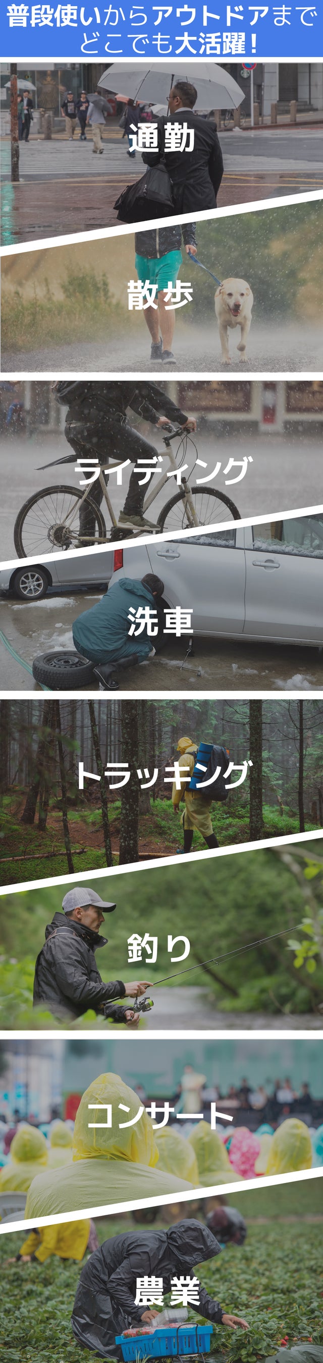 アウトドアや日常生活、どんな場面でもしっかり対応!悪天候でも快適に!