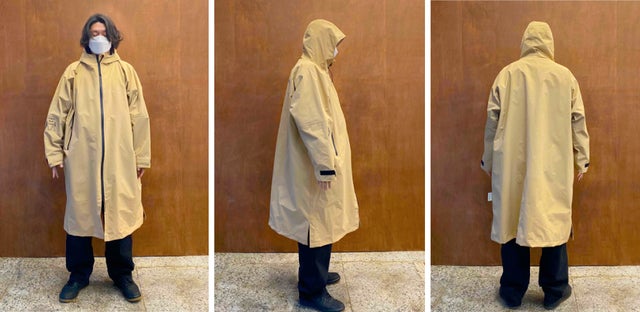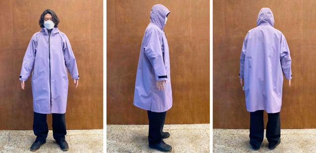 ウィンドブレーカーレインコートはどんな活動にも自由に動けるようにゆったりしたサイズで製作されました。