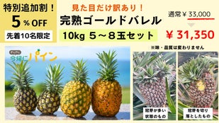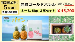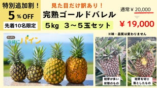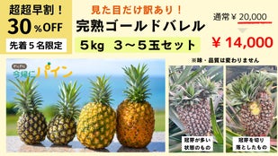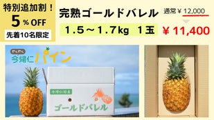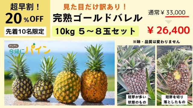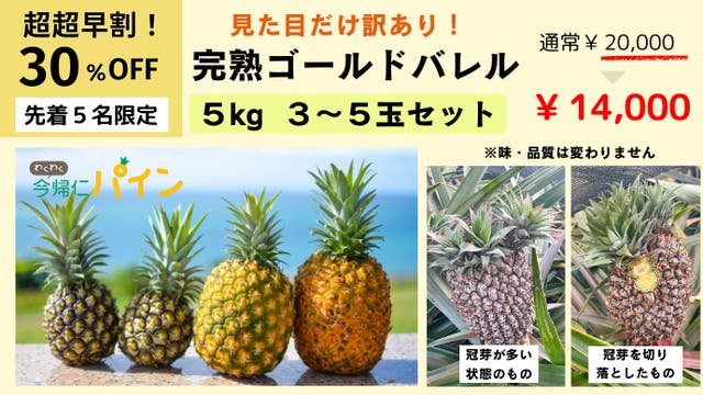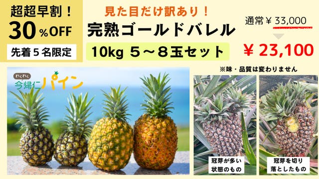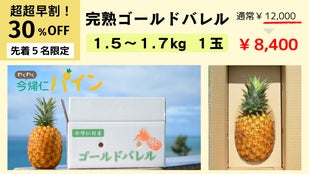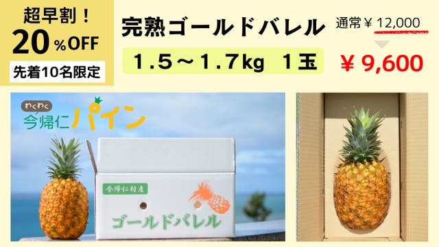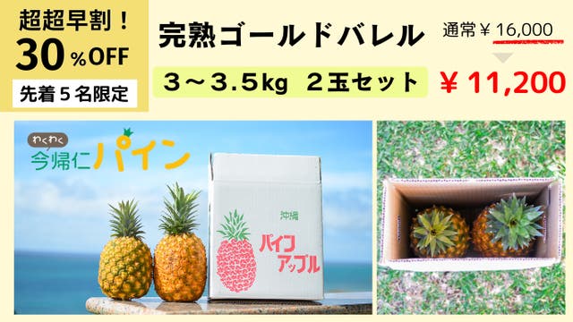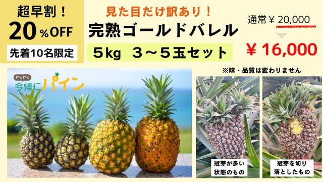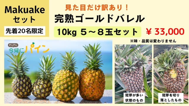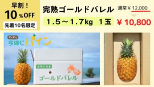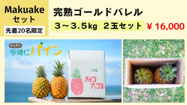 - 糖度16度以上、3年に1度しか収穫できない超希少な今帰仁産パイン「ゴールドバレル」