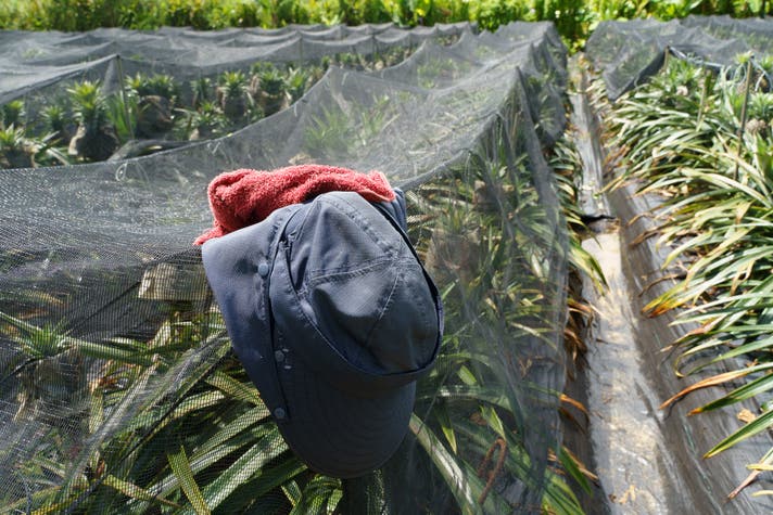 余談ですが、パインの葉は固く尖っており、肥料を撒いたり雑草をとったり農作業の際に軍手をつけても手や足にトゲがささり地味に苦労しております。
