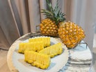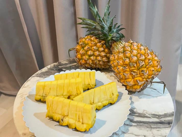 普通のパイナップルに比べると小ぶりですが、芯の部分もやわらかく食べられる部分が多いのがポイントです。ぜひ一緒にお楽しみください!