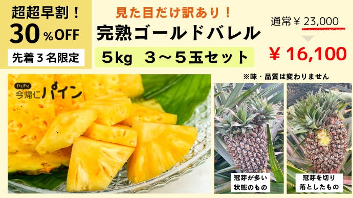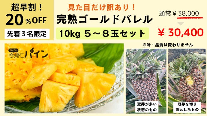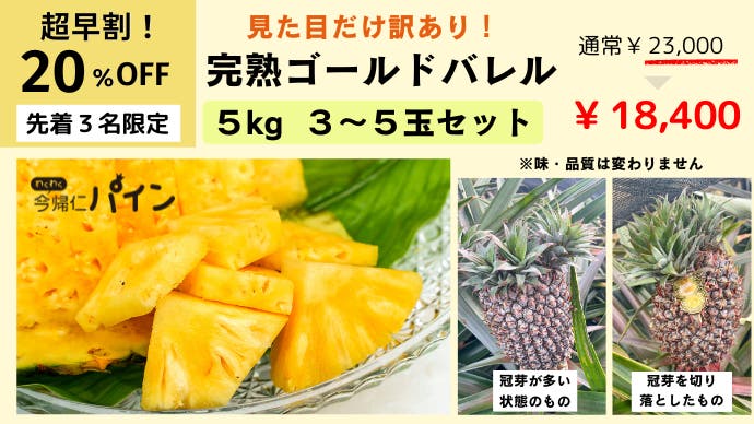 - 3年に1度しか収穫できない超希少な今帰仁パイン「ゴールドバレル」第2段!食べ比べセットも追加!