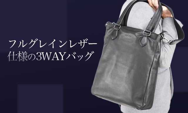 【NALPHI】は高級牛革のフルグレインレザー仕様の3WAYバッグです。