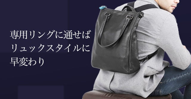 またショルダーストラップを専用リングに通せばリュックスタイルに早変わり。