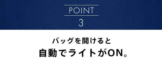 バッグを開くと、バッグの左右からライトを点灯し、中を明るく照らします。