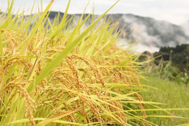 霊峰・諸塚山のお膝元のうつくしい棚田では、うつくしい米が育ちます。古くより受け継がれてきた棚田はムラの宝。豊富な湧水と山間の盆地地形が生み出す朝夕の寒暖差が、米の旨味を一層引き出します。