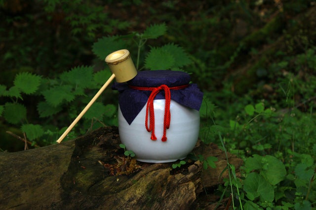 生どぶろくの甕は柄杓(ひしゃく)付きです。お祝い事や、少し特別な晩酌にもオススメ。