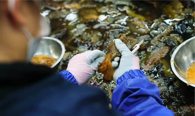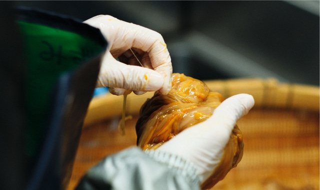 このわたは、10kgのなまこからわずか100gしかとれません。手作業で丁寧に砂と泥をとりのぞく必要があり、たいへんな手間と技術を要します。