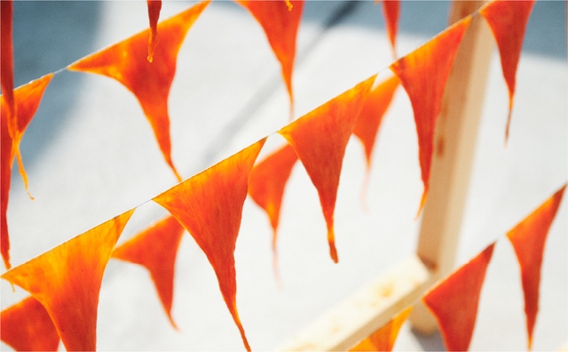 海の旨味が太陽の恵みをたっぷり受けてより濃厚になった、ばちこ。三味線のバチに似ていることからこの名がつきました。冬のよく晴れた日を選んで天日干しをすることで、旨味が凝縮され、他にはない味わいに仕上がります。寒空の下、美しく輝く朱色のばちこが並ぶ様子は圧巻です。