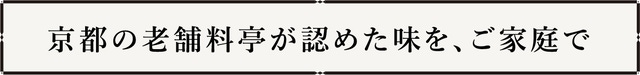 - 京都の老舗料亭が認めた味を、ご家庭で