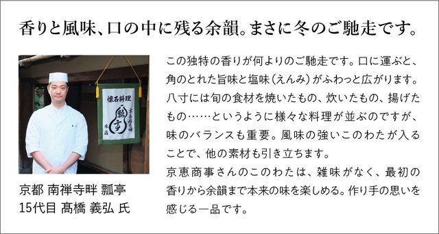 今でも毎年シーズンが始まると一番に味見をお願いしています。そんな瓢亭の高橋さまから頂戴したコメントを掲載させていただきます。