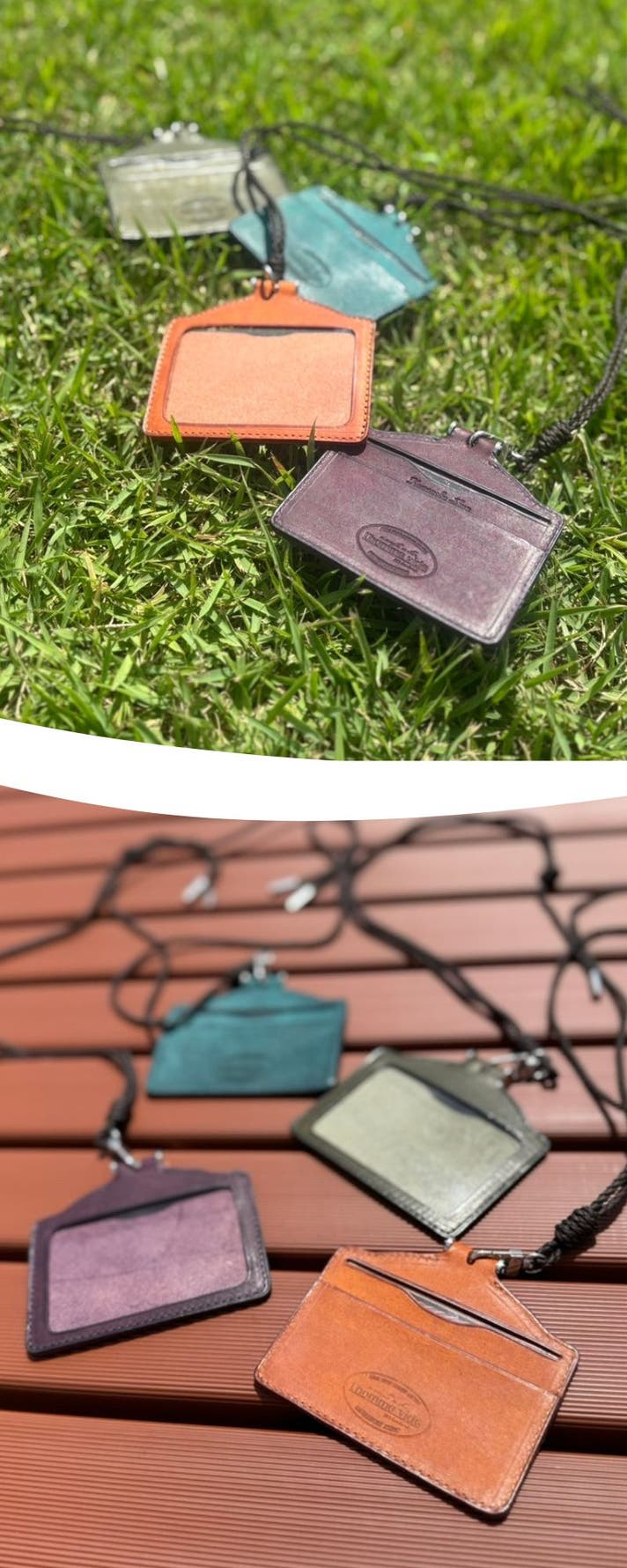 本革のネームホルダーはなかなか首からぶら下げるストラップついてないことが多いかと思いますが、お洒落なストラップもセットになっております。
