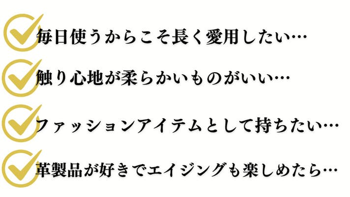 代表自身が本革製品がとっても好きで、さまざまなブランドの革製品を使ってきました。そんな中で選んだのは「プエブロ」最高級のレザーです。和紙の様な風合いとヴィンテージな風合いがとても私の好きな革でした。シンプルを追求しながら、ファッションアイテムとして使えるように考え、試行錯誤しながら制作までに至りました。