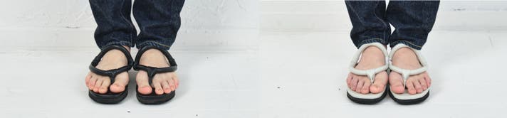 従来の雪駄は、鼻緒で指先だけを支える構造なので