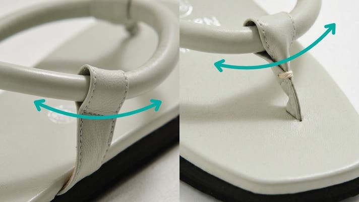 足の幅や形に合わせて鼻緒が自動的に動くため、