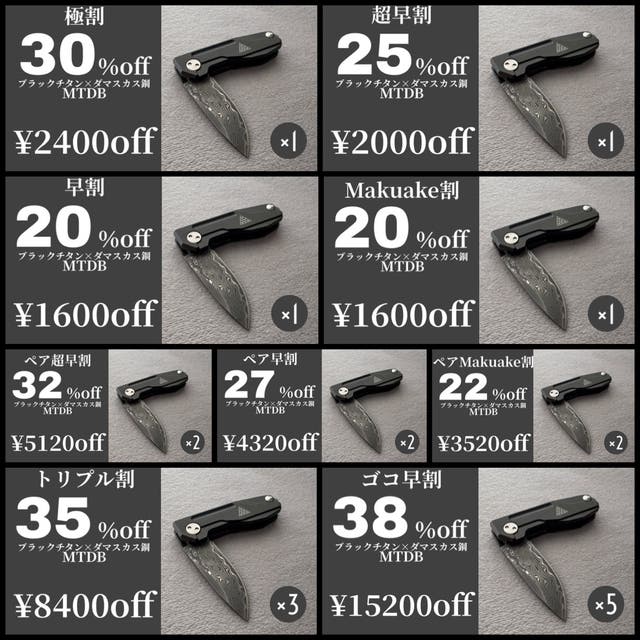 ・ブラックチタン×ダマスカス折畳式ミニナイフ×5