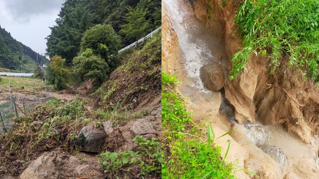 道路はあちこち土砂で遮断され孤立しているエリアも・・・私の畑も土砂が崩れ、作物が下敷きになりました。