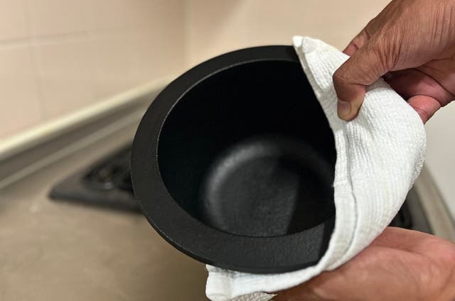 サビが発生したら、“サビ部分を柔らかいスポンジで擦り落としてから、水をはり沸騰させる”という工程を2〜3回繰り返してから、空焚き保管のお手入れをしてください。